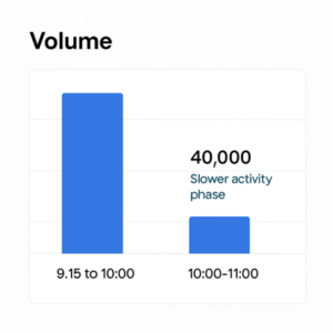 Volume on the stock screen indicates the activity of the stock during ongoing trade. With the volume bar spiking up, many traders will be participating in the trade. Similarly, the small bar shows little or no activity for the stock.