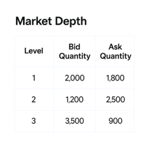 Market depth allows you to keep a keen eye on multiple layers of buy (bid) and sell (ask) waiting orders. In case many orders are grouped at a price, a lot of people are waiting there.